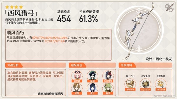 祭礼和西风是缓解充能的两把武器 ,也有比较不错的表现 。